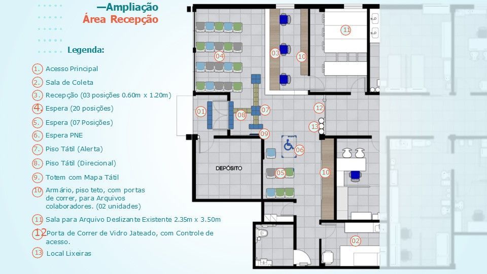 Reforma e revitalização do atual ambulatório da unidade Aracruz, com o objetivo de ampliar as áreas de espera e recepção, totalizando 400 m² de área reformada.