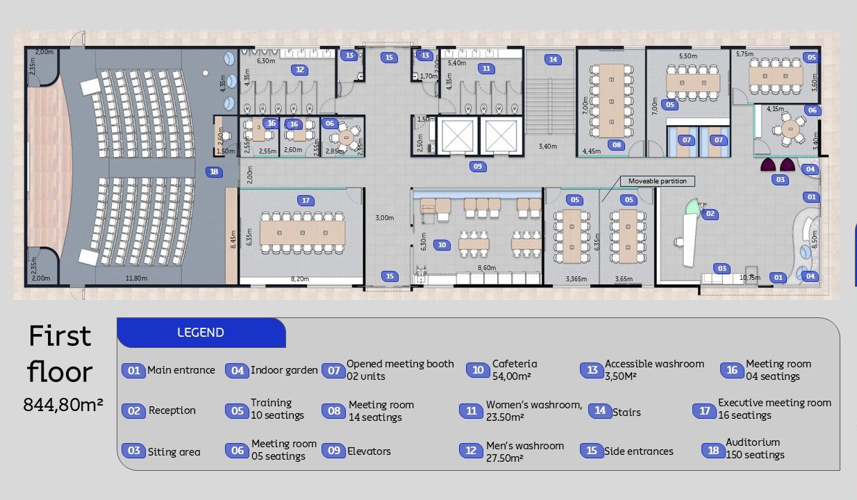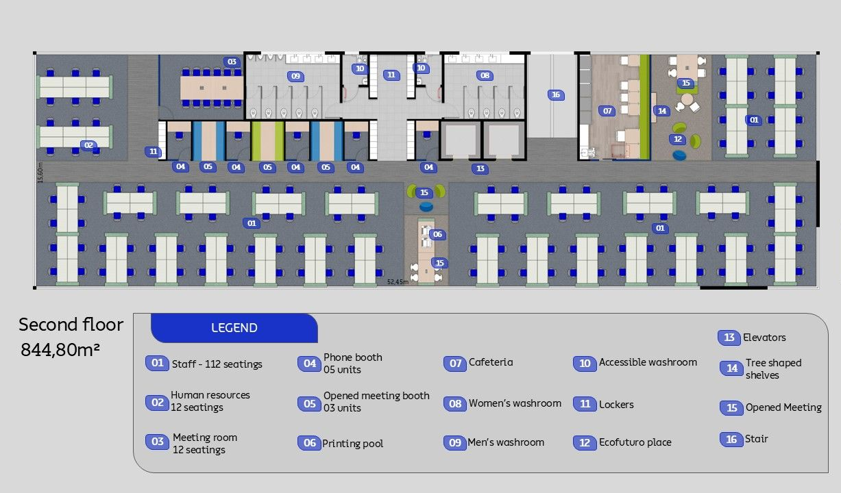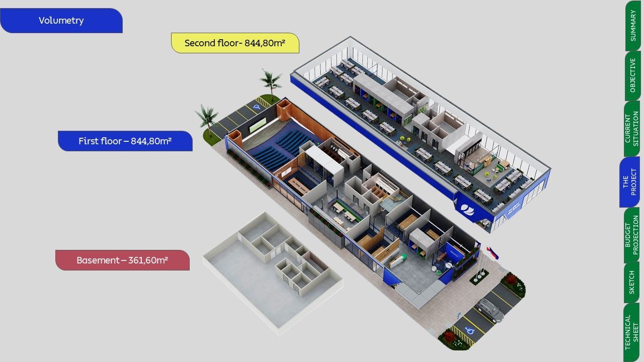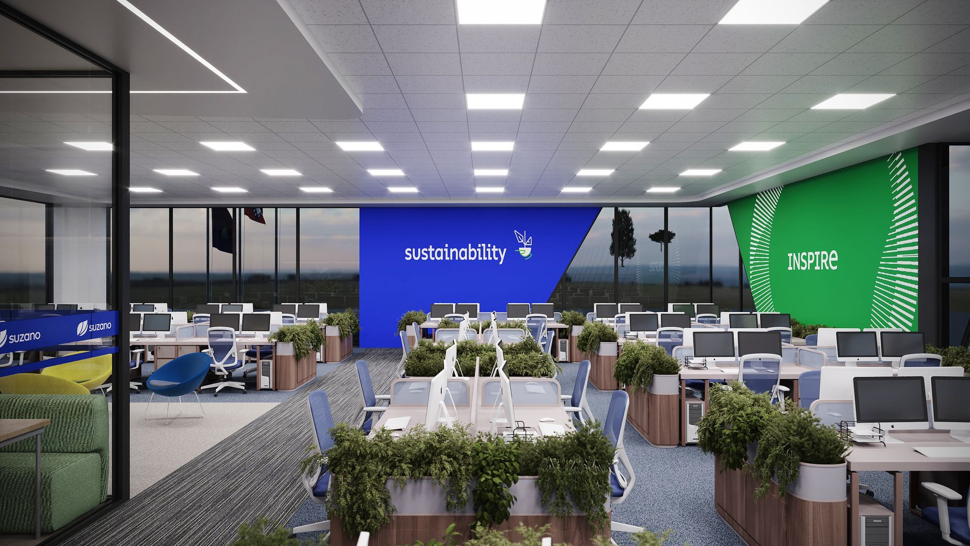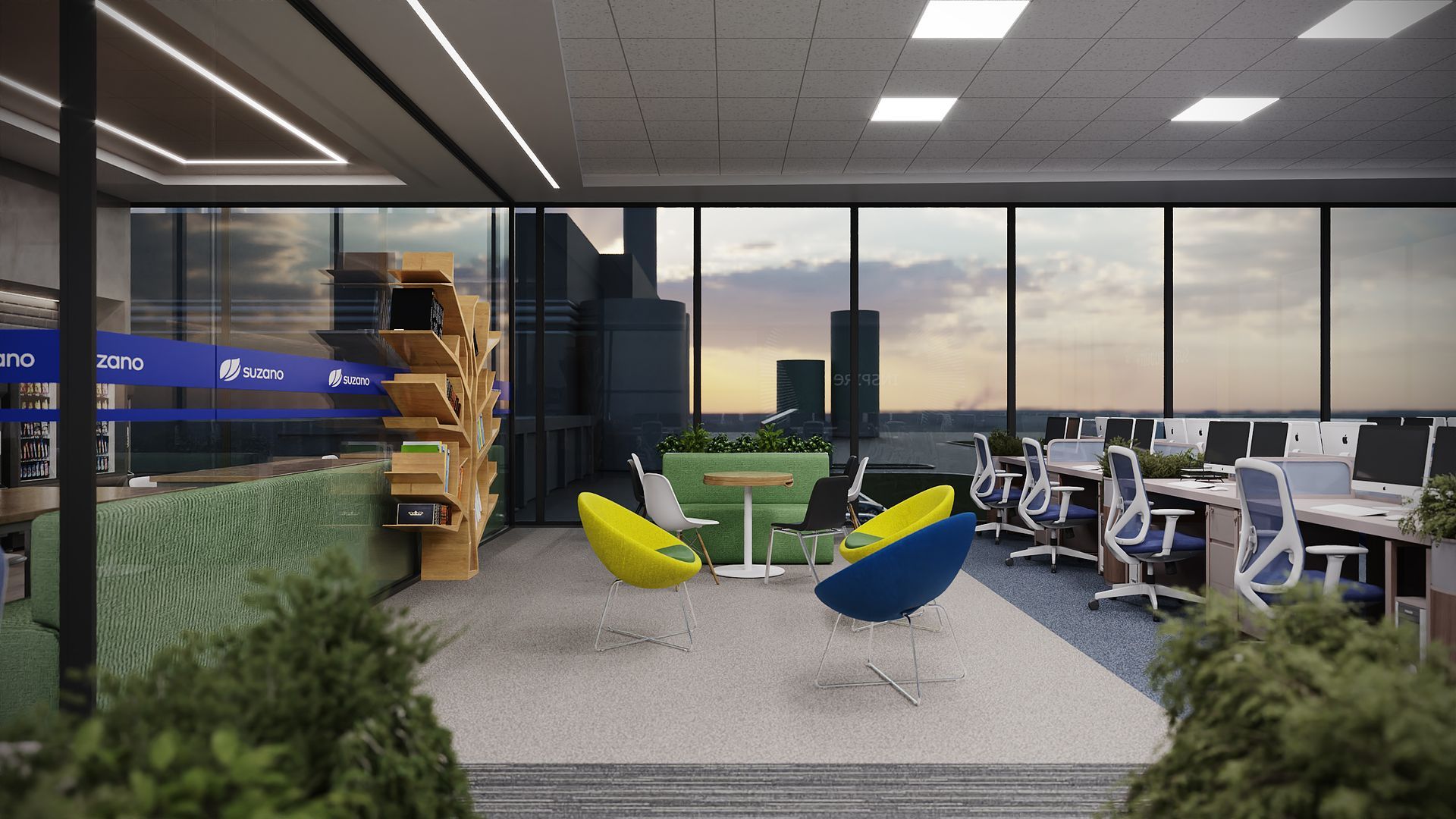Projeto de arquitetura conceitual para o novo prédio administrativo da Suzano, com objetivo de acomodar 150 funcionários. Considerando todas as áreas de apoio, tais como: auditório, salas de treinamento, salas de reunião, cafeteria, banheiros e áreas comuns. Seguindo as normas de acessibilidade vigentes.