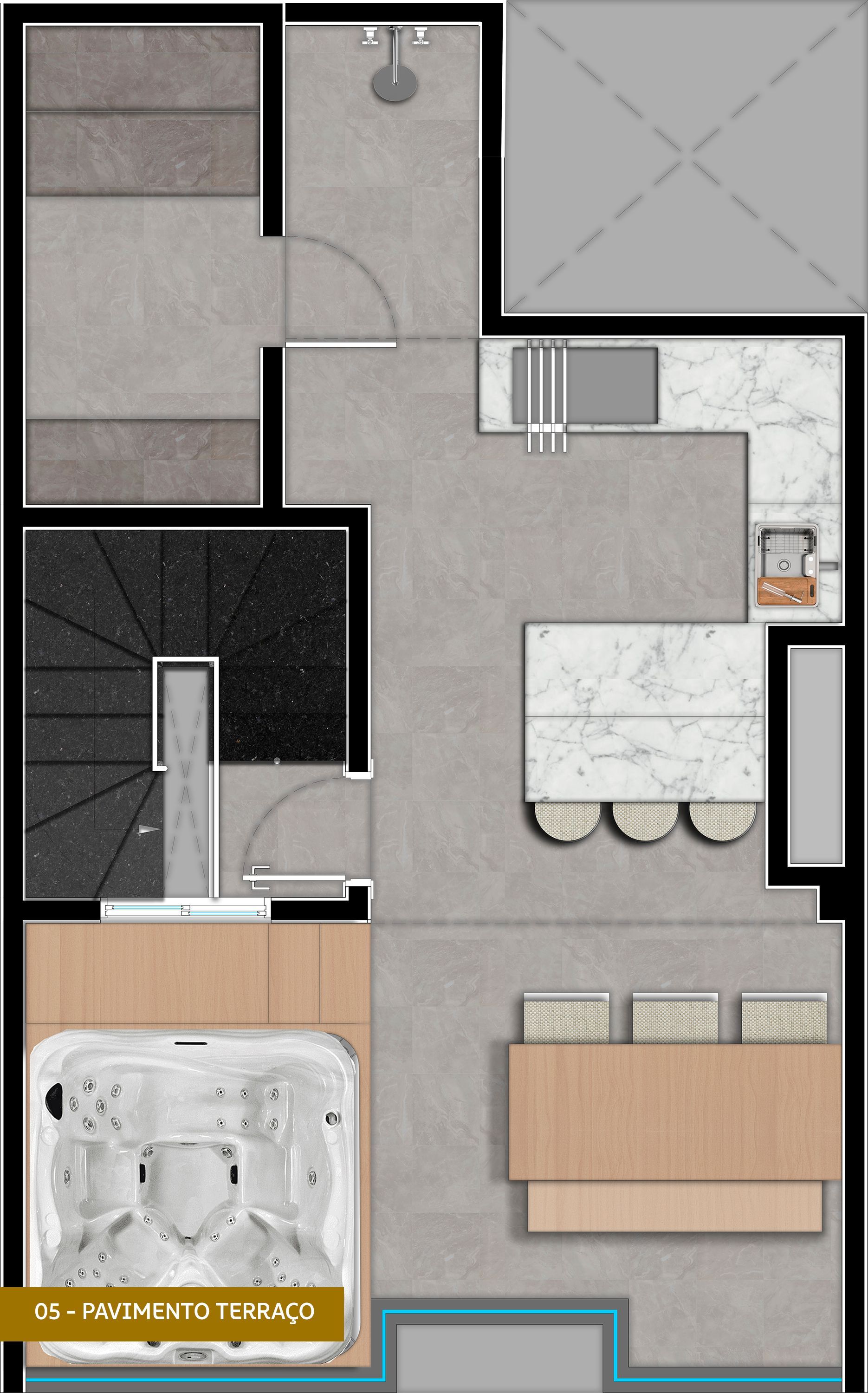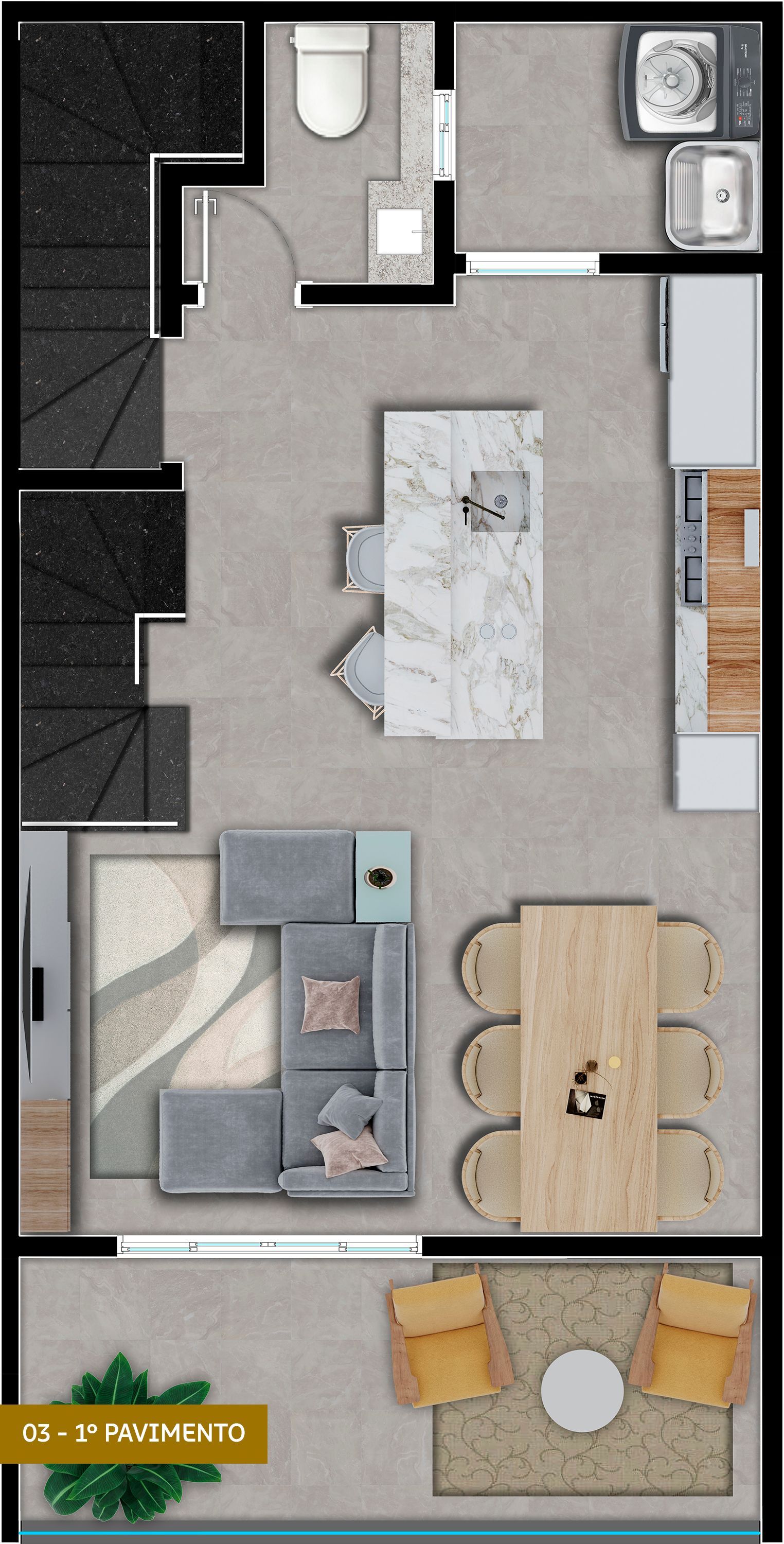 Projeto residencial para empreendimento, com 07 unidades. Cada unidade comtempla ampla garagem, varanda e espaço gourmet.
