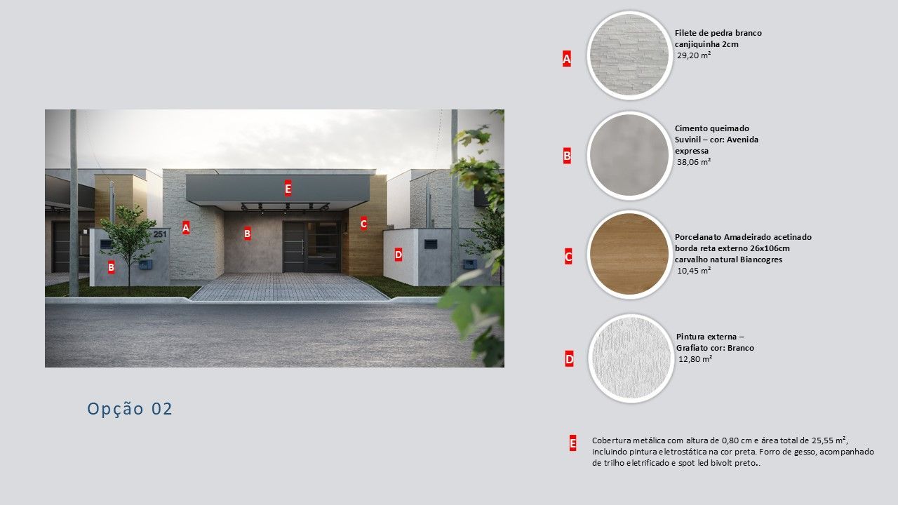 •Opção 02 – Com acabamentos e elementos arquitetônicos nível “Intermediário”
