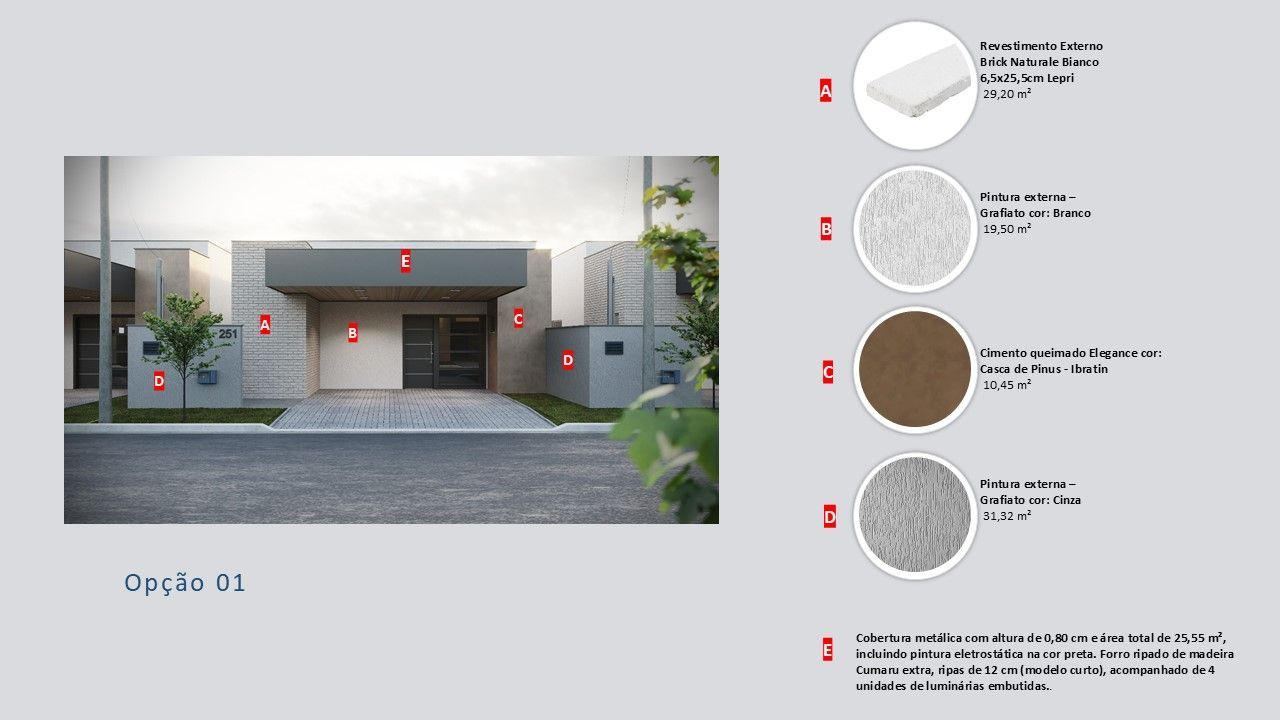•Opção 01 – Com acabamentos e elementos arquitetônicos nível “Básico”