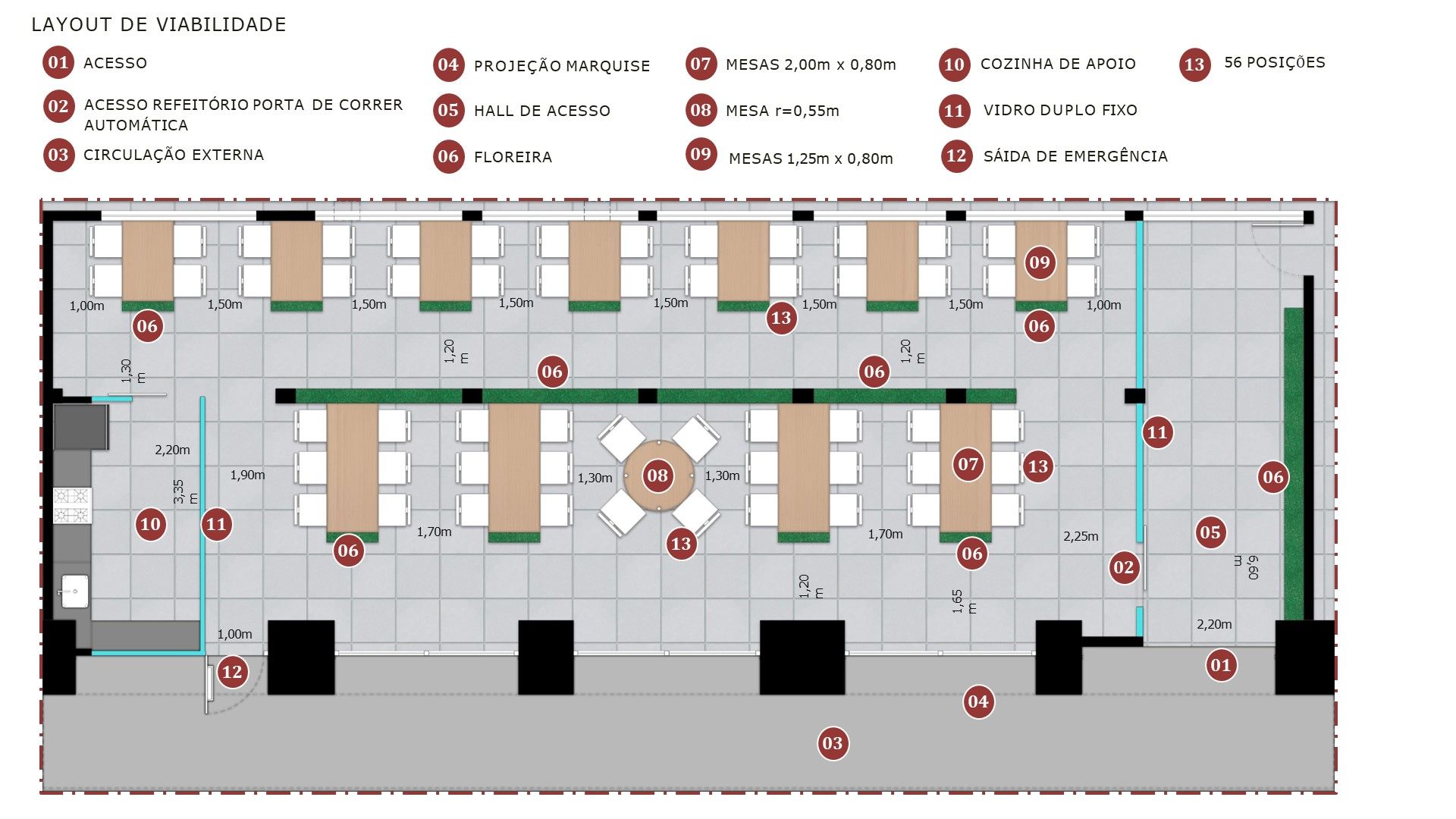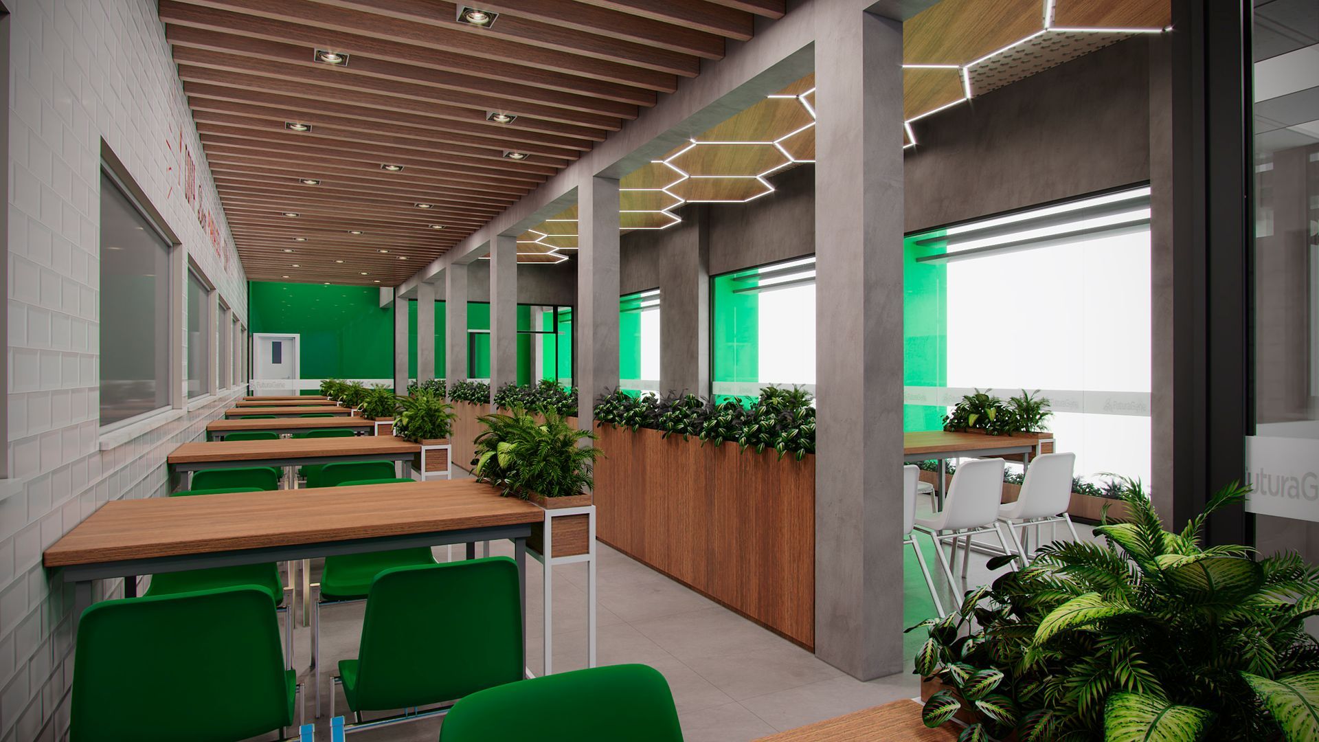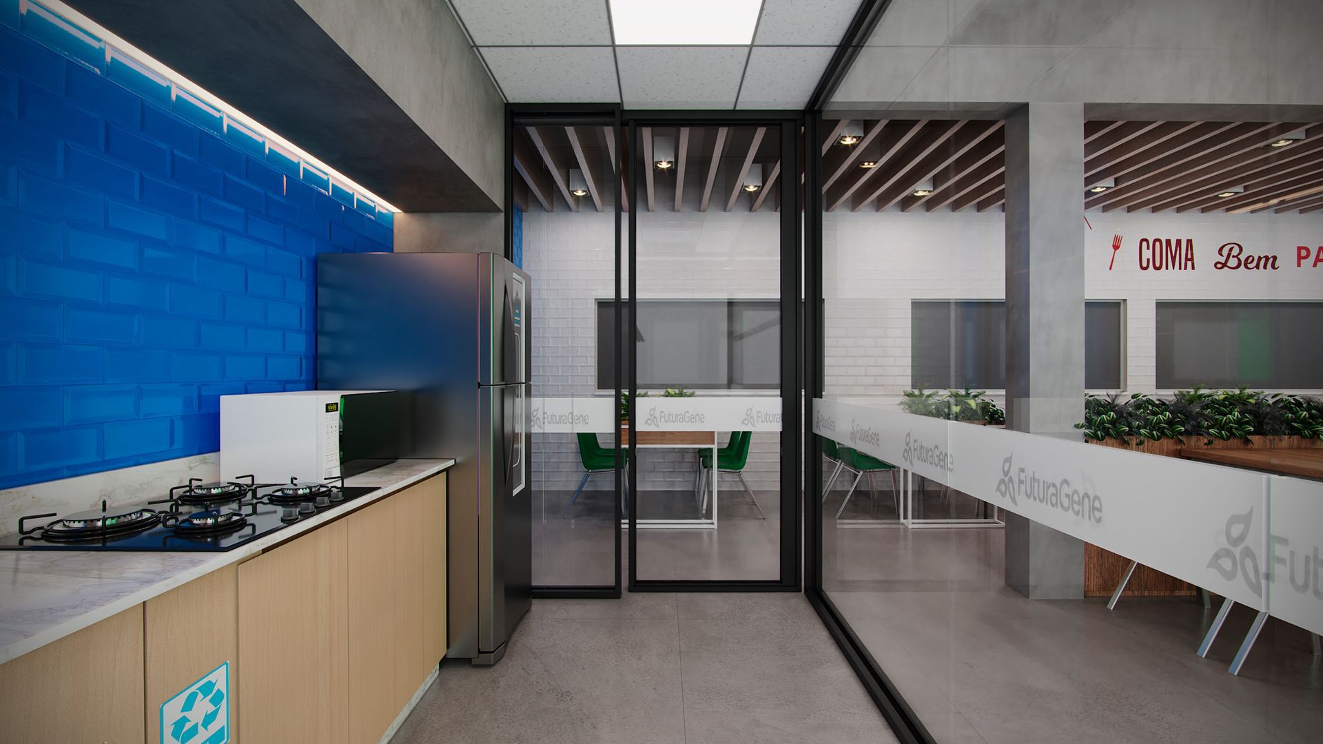 Projeto de Arquitetura para implantação de um Refeitório, juntamente com toda infraestrutura e equipamentos necessários, dentro da legislação vigente e normas de acessibilidade. No atual Prédio FuturaGene.