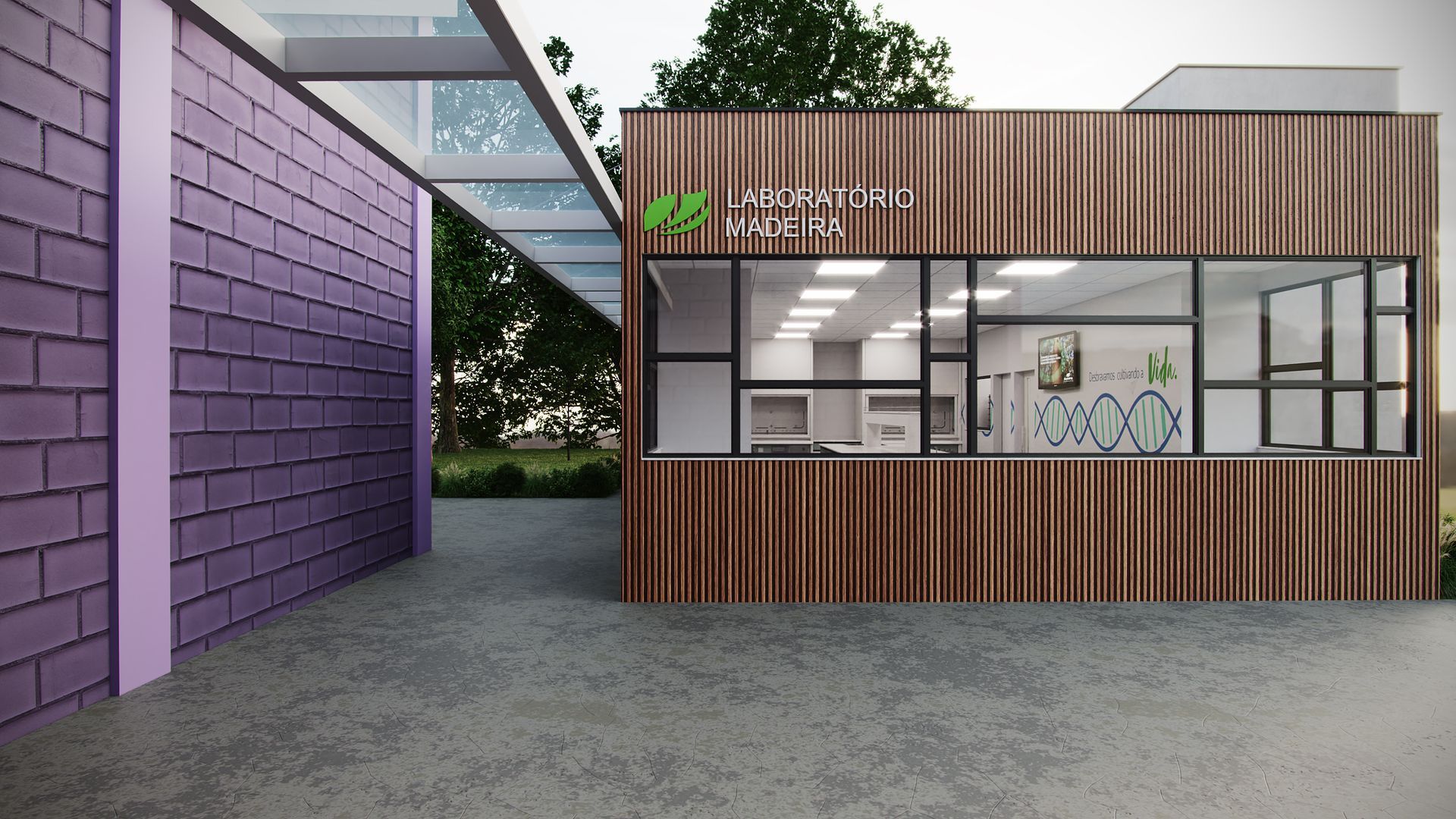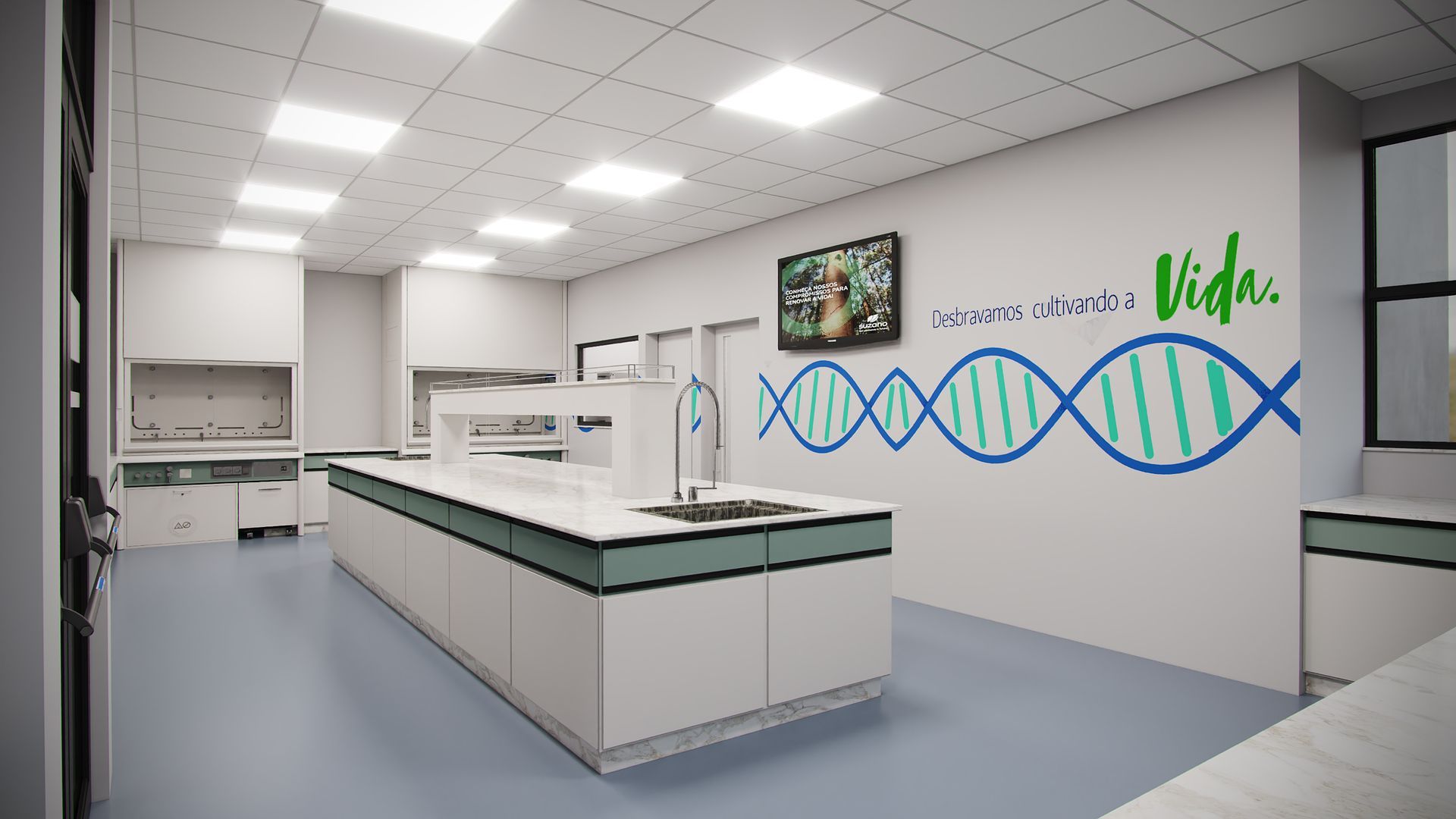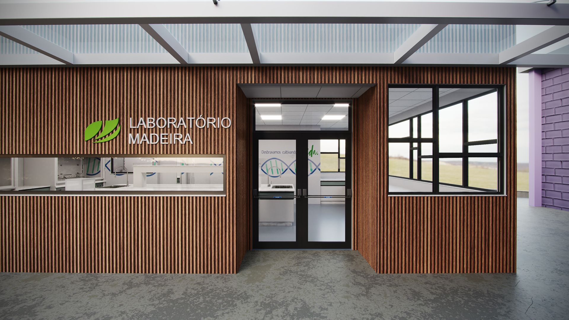 Projeto para Laboratório de Madeira, anexo ao laboratório de qualidade, com o intuito de acomodar 02 autoclaves de 50 litros cada, uma 01 coifa, balança digital, bancadas, aparelho Nir, prateleiras e armários, no conceito Juntos & Misturados Suzano. Somando uma área de aproximadamente 105m² de projeto.