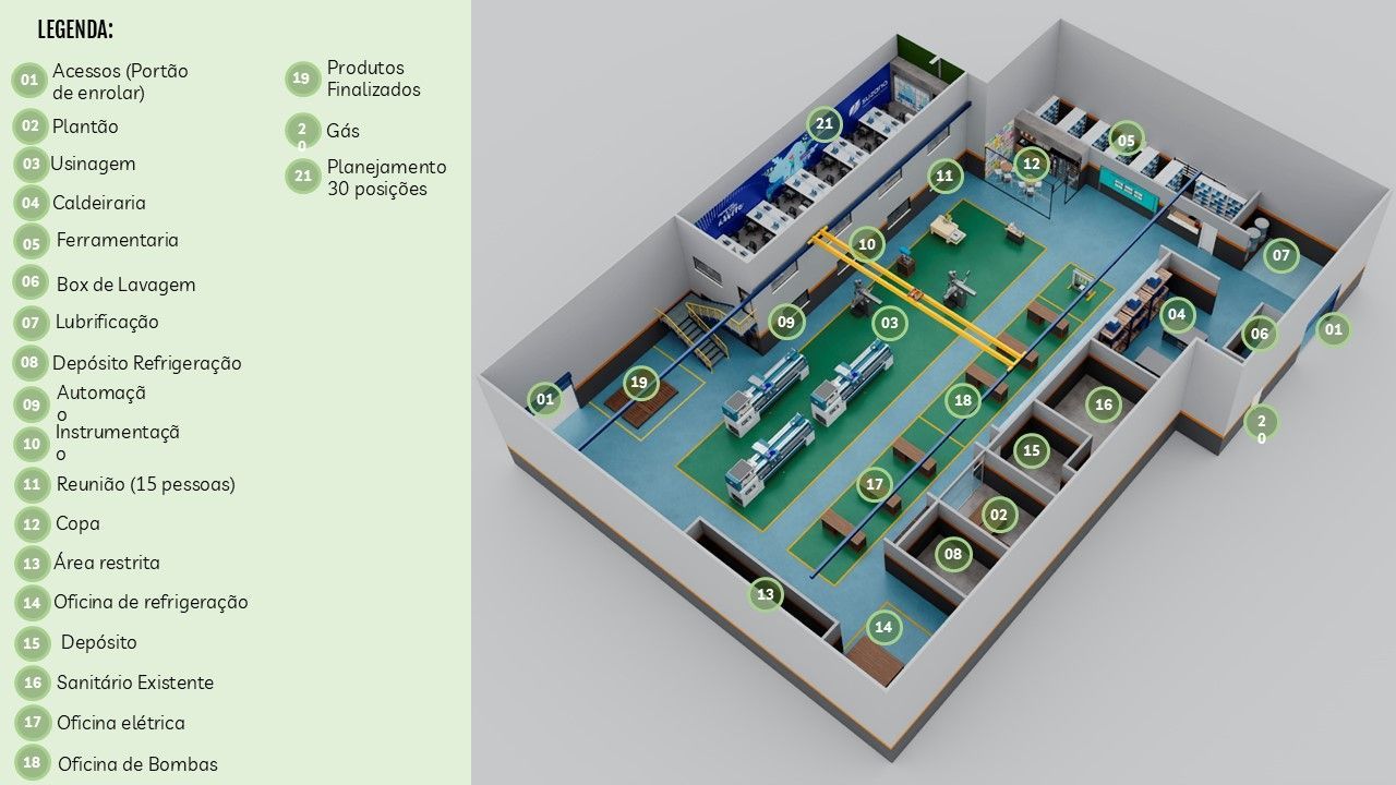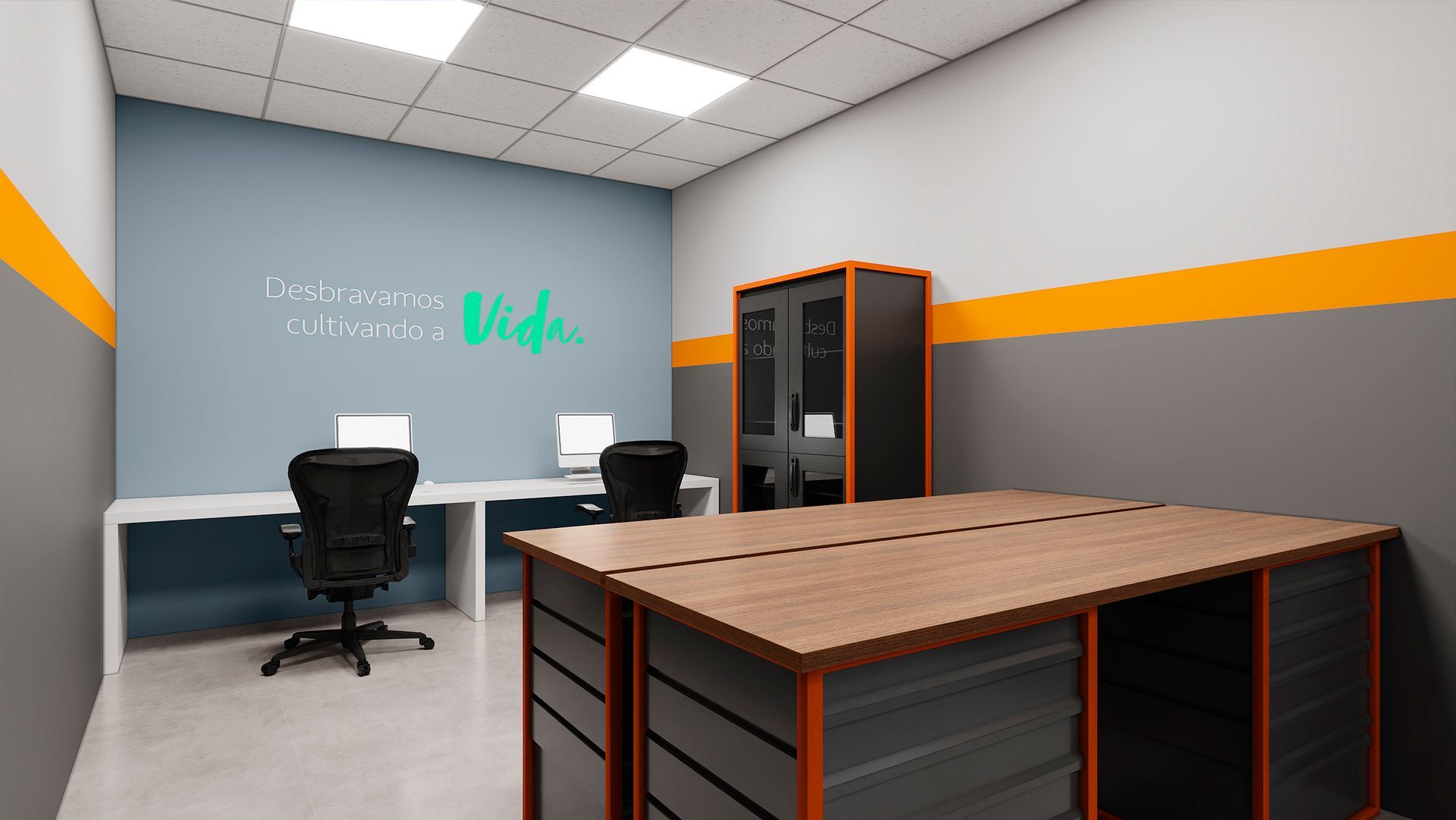 Reforma das oficinas de manutenção da unidade da Suzano localizada em Belém - PA. O projeto contempla previsão para 30 posições, copa, sala de reunião para 15 pessoas, sala de treinamento, pool de impressão, laboratório de automação e instrumentação. Além da ampliação das oficinas de lubrificação, bombas, usinagem, elétrica e mecânica, além da caldeiraria, ferramentaria, sala de plantão, depósito e estudo de viabilização de ponte rolante. Todo o projeto foi adequado as normas de segurança e acessibilidade.