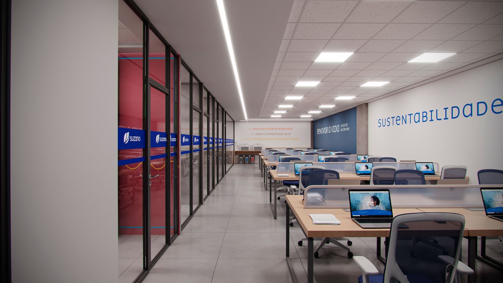 Projeto de Arquitetura para revitalização da área de planejamento do Pátio de Preparação de Madeira. Contemplando nova estrutura para aproximadamente 30 posições, juntamente com toda infraestrutura e ambientes de apoio necessários, dentro do conceito Juntos & Misturados Suzano e legislação vigente.