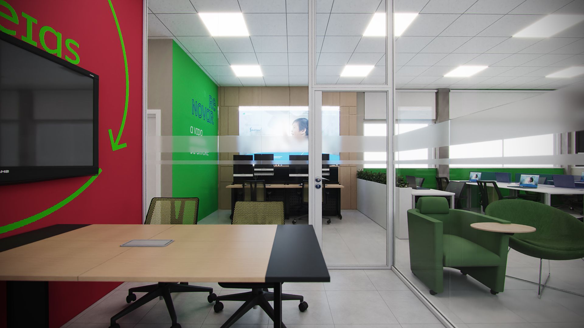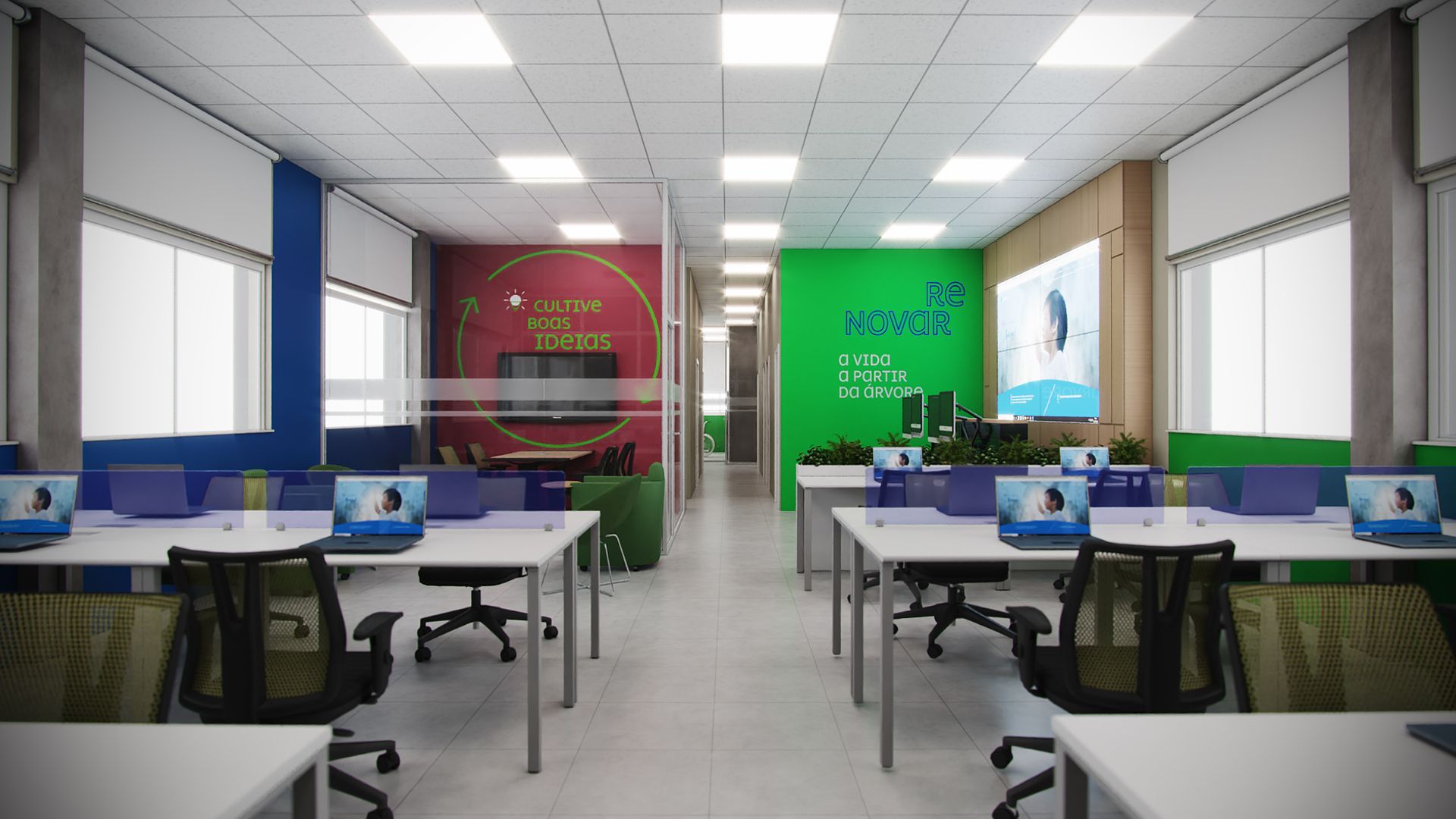 Projeto de interior para revitalização do edifício localizado na portaria 02, contemplando novo layout de viabilidade, troca de acabamentos em geral, forro, iluminação, mobiliários, louças, metais e divisórias, dentro do conceito Juntos & Misturados Suzano. Somando uma área de aproximadamente 196m² de projeto.