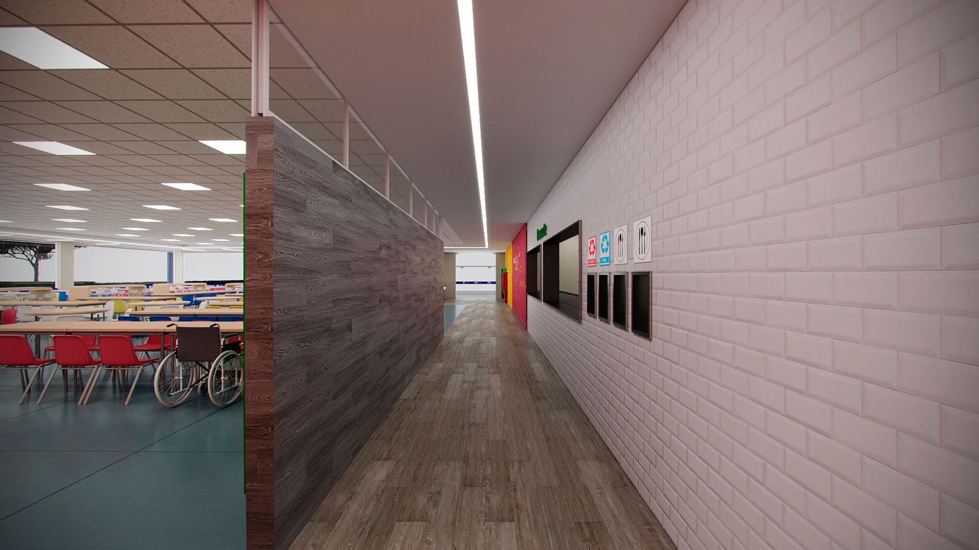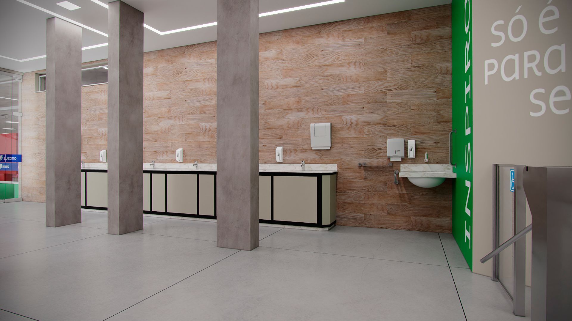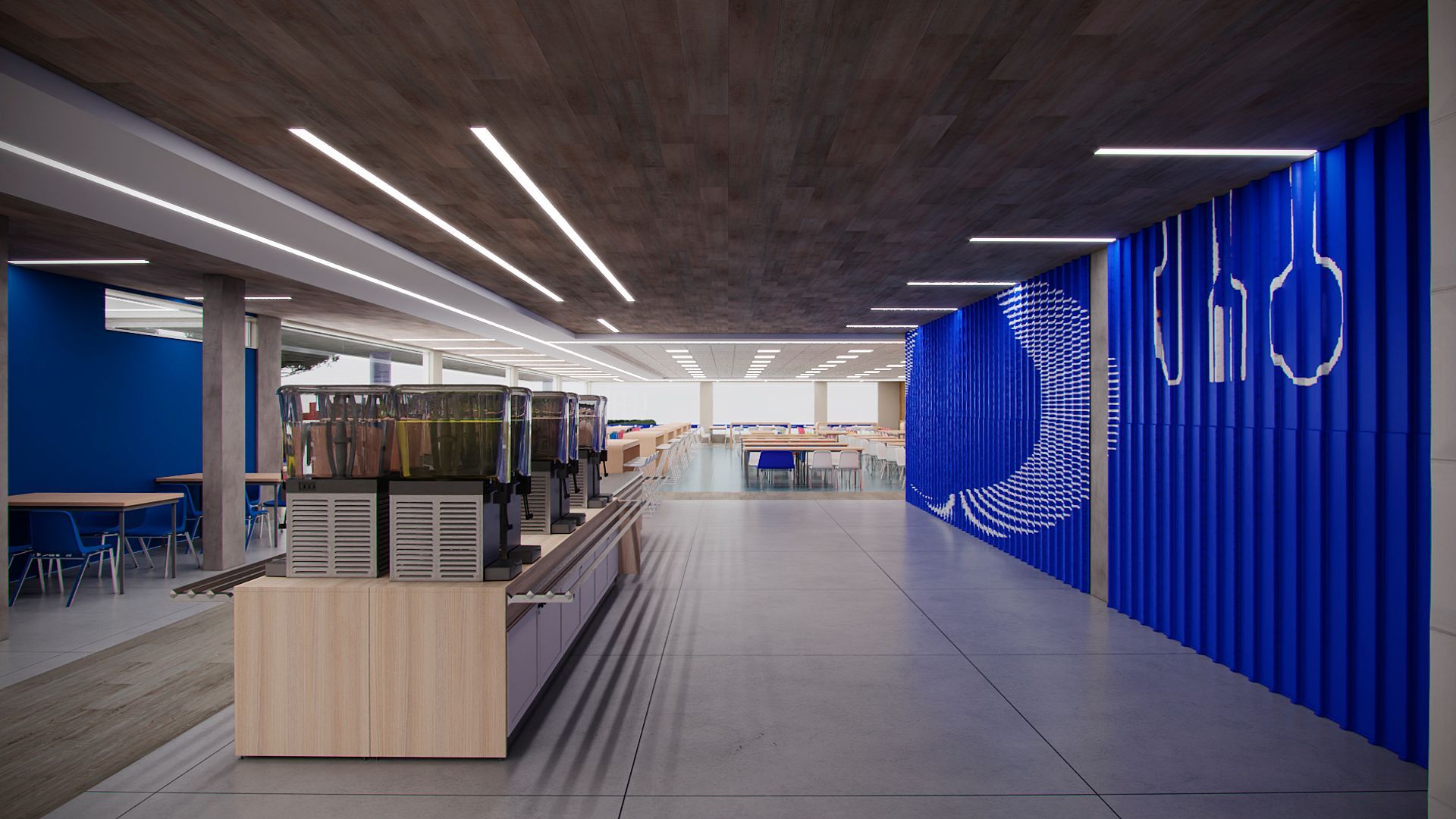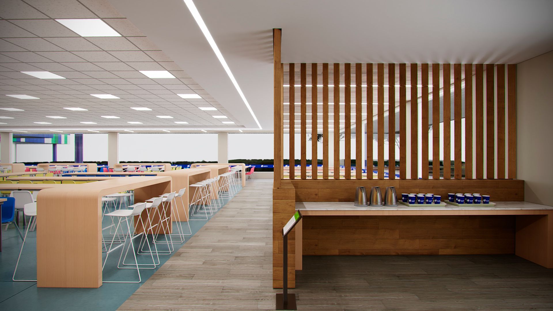 Projeto para o restaurante da unidade da Suzano em Mucuri- SP, contemplando novo layout funcional, troca de revestimentos, forro, iluminação e mobiliários.