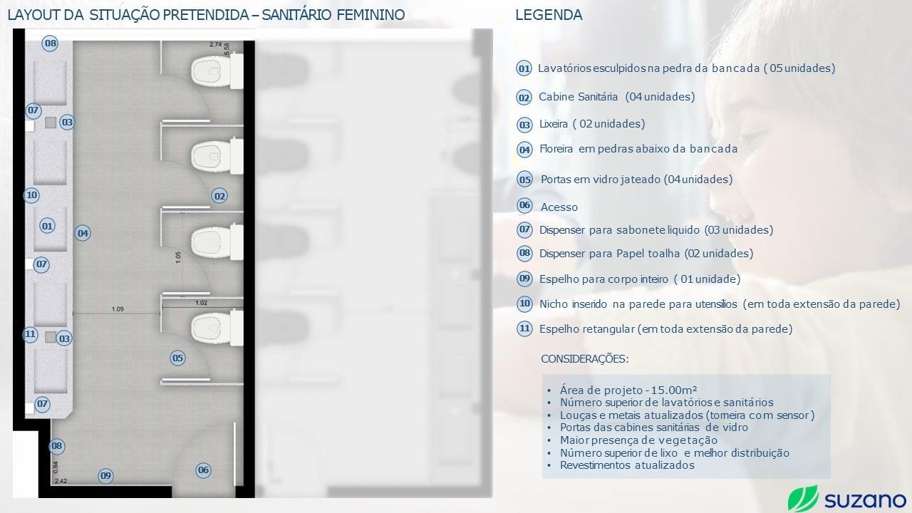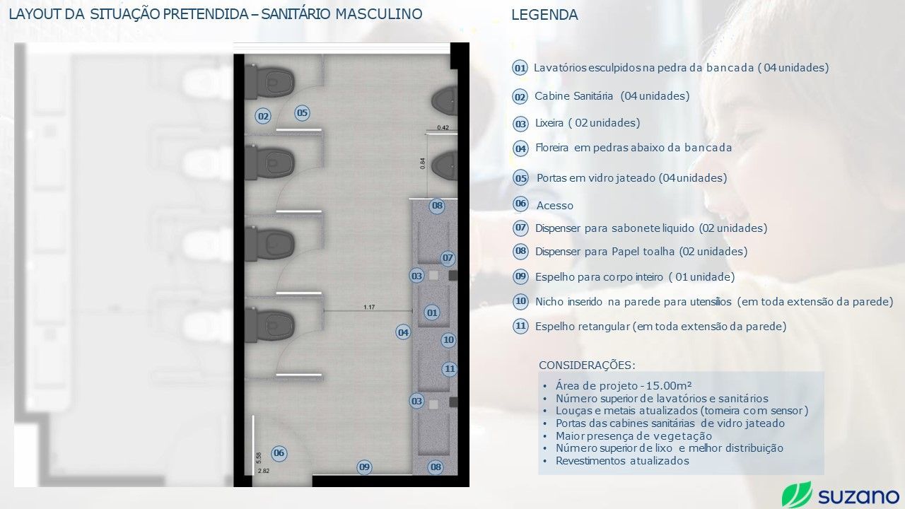 Projeto de Arquitetura para reforma e ampliação dos sanitários masculino e feminino situados no 1º pavimento do prédio administrativo (Juntos & Misturados)..